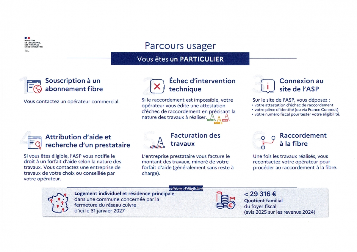 DISPOSITIF D'AIDE AU RACCORDEMENT A LA FIBRE - PARCOURS POUR LES PARTICULIERS
